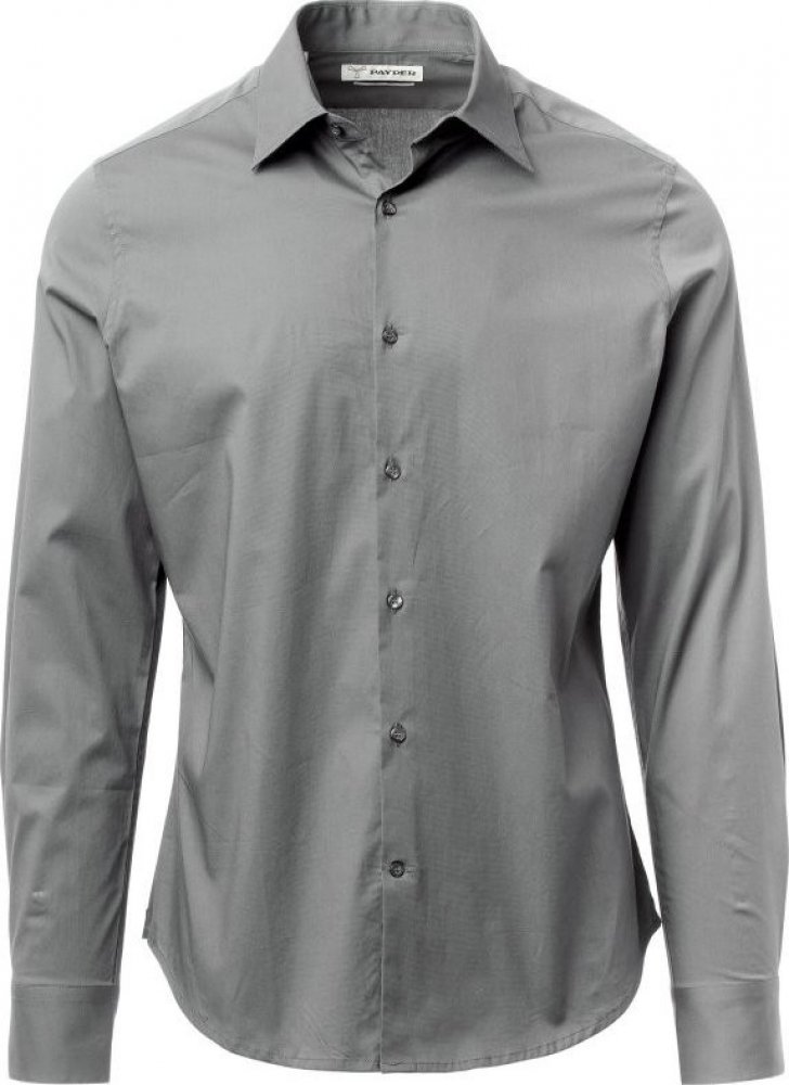Pánská košile slim střihu, tvarovaný italský límeček s uzavřeným stojáčkem a odnímatelnými kosticemi, vnitřní nařasená léga, viditelné zapínání, hladké zádové sedlo, záševky uprostřed zad, zakončení látkovým klínkem na bocích, zaoblené manžety s 1 knoflíkem.
