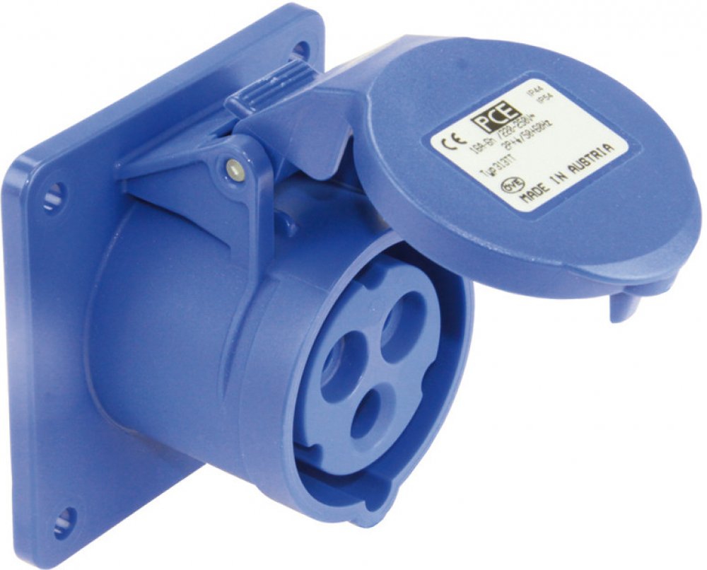 zásuvka vestavná 5-pólová, 32A / 400V, 6h, IP44, příruba 75x75mm, přímá, bezšroubov...
