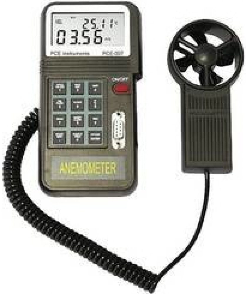 VybaveníMěří rychlost a teplotu vzduchuVypočítá a zobrazuje objemový průtokUloží 2000 sad naměřených hodnotMá rozhraní RS-232Pro přenos dat je k dispozici softwarezobrazuje v různých barvách. Jednotky mají duální displejRozsah dodávky1x křídlový anemometr PCE-007 1x software 1x baterie 1x pouzdro na přenášení 1x návod
