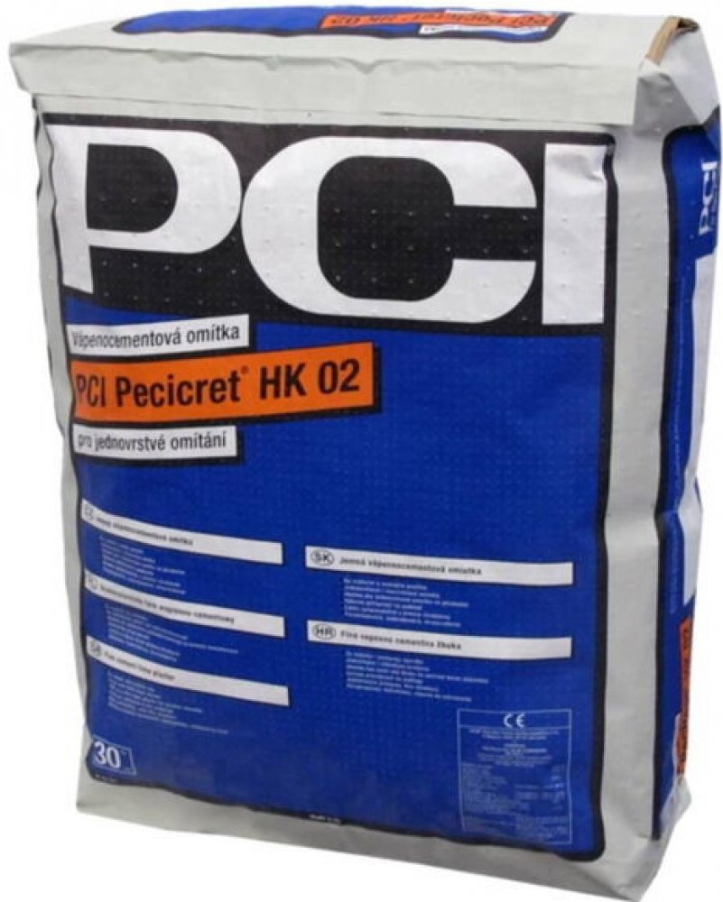 PCI Pecicret HK 02 je jemná vápenocementová omítka pro omítání Ytongu a pórobetonů.PoužitíOmítková malta určená zejména pro vytváření vnitřních a venkovních jednovrstvých i vícevrstvých omítek stěn a stropů Vhodná pro všechny běžné typy zdících stavebních materiálůVhodná jako tenkovrstvá omítka pro pórobetonPoužitelná jako finální vápenno cementový štuk na podkladní jádrové omítky, nebo jiné vhodné podkladyS možností zahlazení povrchu běžnými filcovými, pěnovými, nebo molitanovými hladítkyZahlazený povrch PCI Pecicret® HK 02 je též vhodným podkladem pro minerální, pastovité strukturované omítky a mozaiky PCIVlastnostiVýborná přilnavost k podkladuParopropustná, vodoodpudivá, mrazuvzdornáS obsahem výztužných vlákenS vysokou mechanickou odolností proti otěru a poškrábáníUrčená pro ruční i strojní zpracováníSnadno zpracovatelná s jemnou strukturouBalení: 30 kg