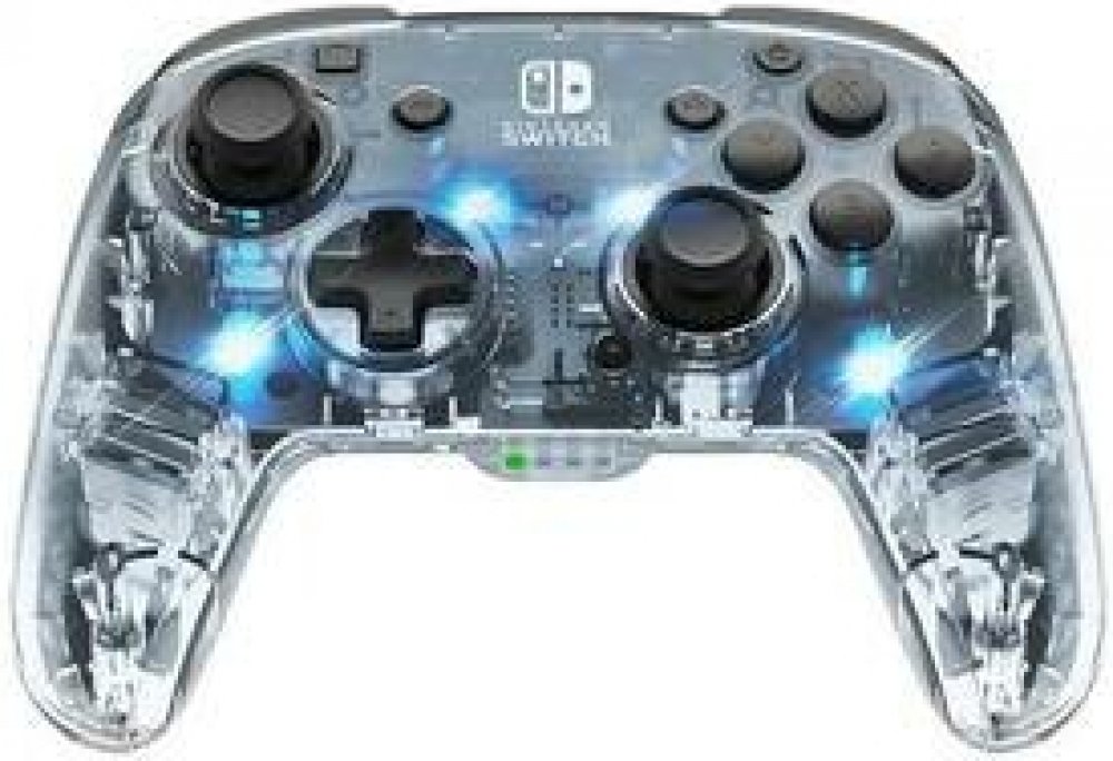 PDP přichází s elegantním drátovým ovladačem pro Nintendo Switch, který disponuje moderním designem s prizmatickým LED osvětlením, dlouhou dobou hraní až 20 hodin, zdířkou (3,5 mm jack) pro připojení headsetu a ovládáním hlasitosti přímo na D-padu.