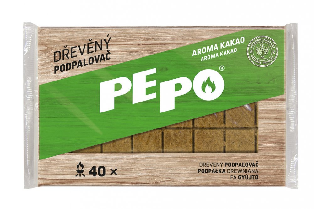 PE-PO dřevěný podpalovač, obsahuje pouze lisované dřevěné piliny a parafín. Zajímavá alternativa ke klasickým pevným či tekutým podpalovačům.