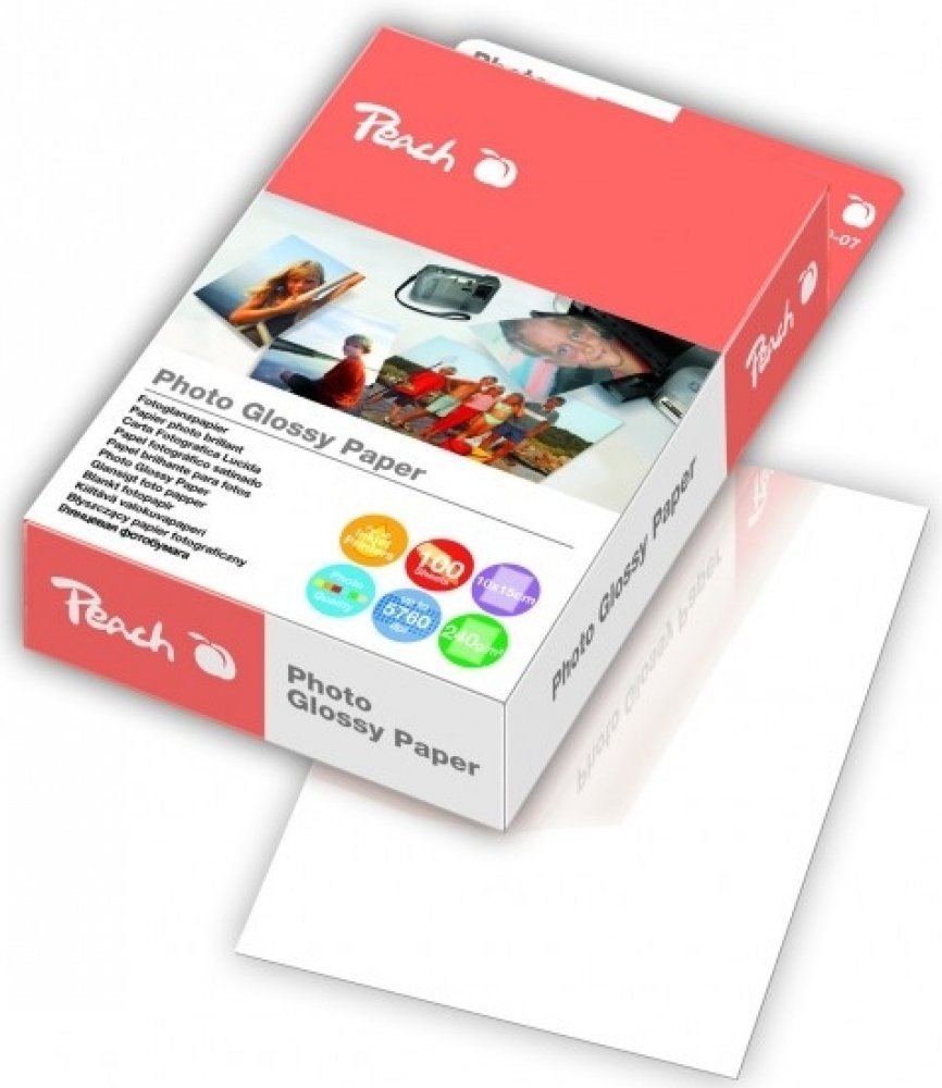 Univerzální fotografický papír Peach vhodný pro všechny typy inkoustových tiskáren ve vysokém lesku v rozměru 10x15 a gramáží 240g/m2. Díky mikropórovému povrstvení budou Vaše fotografie jako od profesionála. Papír vyniká rychlým schnutím barev a velkou odolností proti vodě. Je stálobarevný a odolný proti blednutí. V kombinaci s Peach inkoustovými náplněmi docílíte dlouhotrvajícího tisku vašich fotografií.
