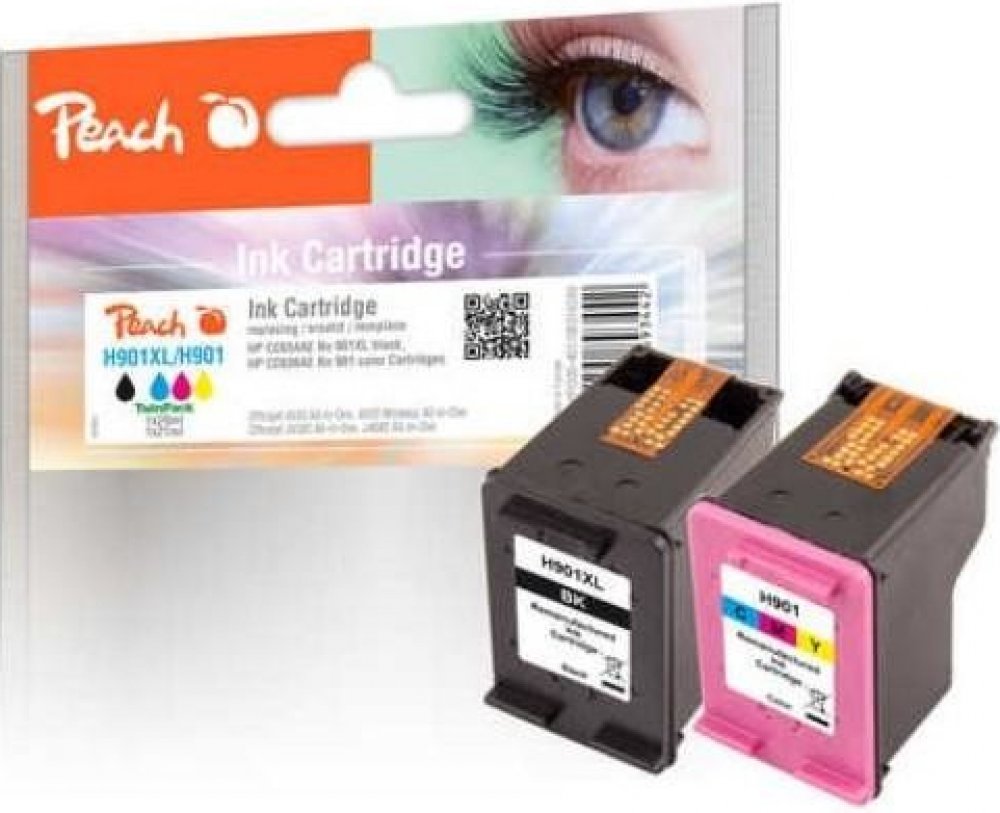 PEACH kompatibilní cartridge HP No 901XL MultiPackManufacturer ID HP No. 901XL, CC654AE, CC656AEObsah 1x20, 1x16 mlVýnos 865, 464 StránkyBarvy černá, barevnáKompatibilní tiskárny (16)HP OfficeJet 4500HP OfficeJet 4500 SeriesHP OfficeJet 4500 Wireless...