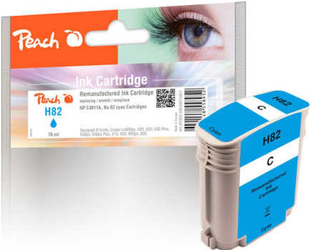 Peach kompatibilní inkoustová náplň pro tiskárny značky HP, kompatibilní s HP č 82 (C4911A), azurová (cyan), 70ml