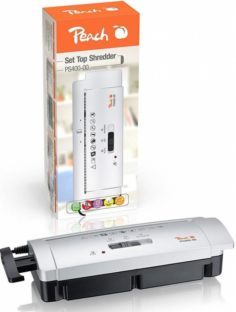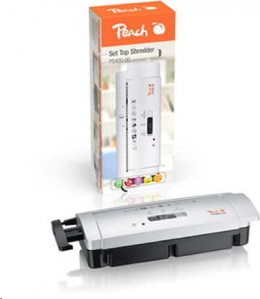 Kancelářský skartovací stroj Stroj skartovací Peach PS400-00 (7 mm) je optimální řešení pro skartaci důvěrných dokumentů. Výkon a funkce této skartovačky reagují na potřeby moderní kanceláře. Skartujte rychle, pohodlně a bezpečně.