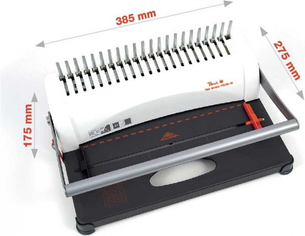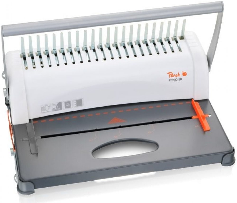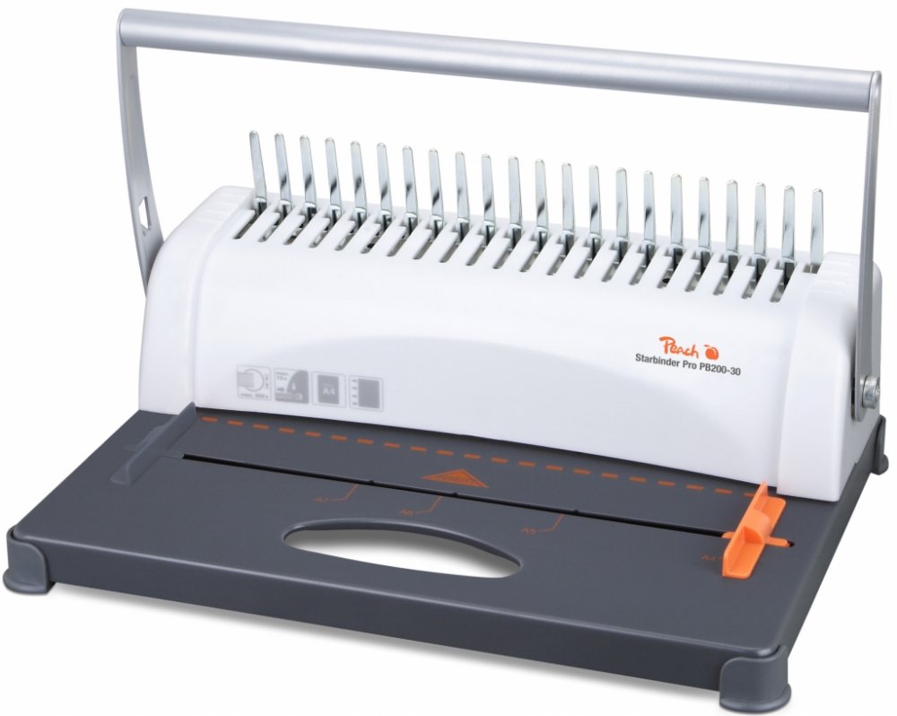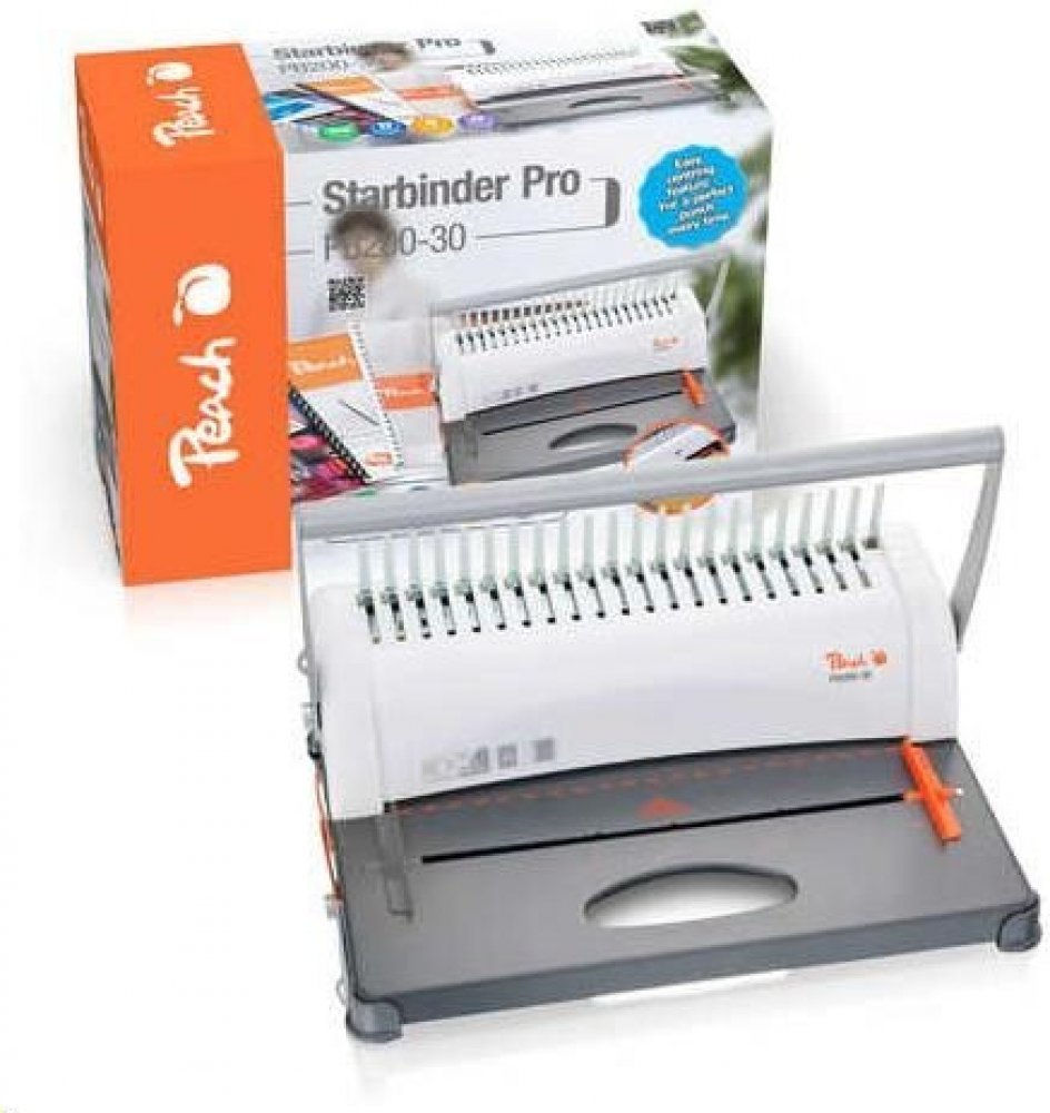 Vazač Peach Star Binder Pro (PB200-30) pro vazbu až 350 listů do plastových hřbetů, dostupný 10/2014Kancelářský ruční vazač Peach Star Binder Pro s děrovačem s masivní ocelovou základní deskou pro snadné a rychlé vytváření brožur a publikací s pružným plastovým hřbetem.