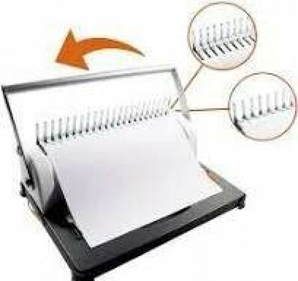Tento druh vazby je velmi lehký, jednoduše se vytváří a v případě potřeby lze opět rozebrat. Vazač lze použít pro vazbu až 350 listů formátu nejvýše A4 80g/m2. Vestavěný děrovač má 21 nožů a dokáže současně zpracovat až 12 stran.