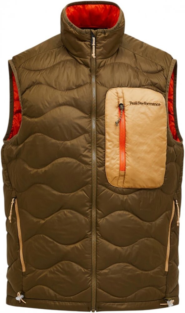 Dámská prošívaná péřová vesta. Volný střih s mírně prodlouženou zadní částí, s nastavitelnou šňůrkou na spodním lemu, kapsami na zip a praktickou náprsní kapsou, kterou doplňuje elastický lem v pase a vyšité logo značky na hrudi. Kvalitní výplň z kachního peří v poměru 90/10 pochází z odpovědných zdrojů, které jsou plně dohledatelné prostřednictvím programu Track My Down®. Materiálové složení zaru...