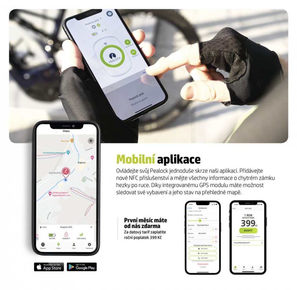 Máte dvě možnosti, jak odemknout/zamknout Váš Pealock. Buď prostřednictvím NFC karty, která je součástí každého balení, anebo prostřednictvím tlačítka v mobilní aplikaci. Pokud by někomu nevyhovovala kartička, je možno dokoupit NFC klíčenku, či náramek.