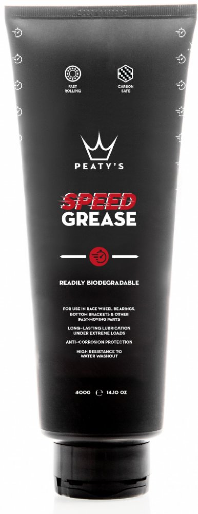 Peatys Speed Grease splňuje vysoce náročný test 301B biologické rozložitelnosti, zároveň však vykazuje vysokou voděodolnost, vynikající antikorozní vlastnosti a přilnavost ke kovovým částem a je plně slučitelný s většinou ostatních konvenčních maziv. Je ideální pro závodní použití u rychle se pohybujících částí a má dlouhou životnost v extrémním zatížení.