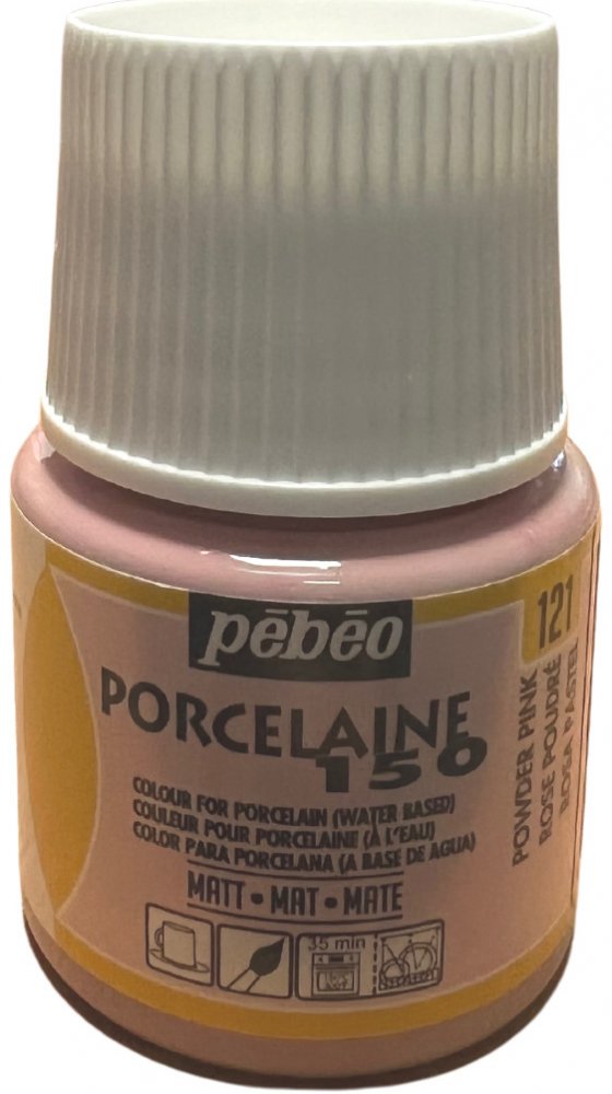 Porcelaine 150 značky Pebeo jsou barvy na porcelán. Barvy jsou vhodné pro žáruvzdorné povrchy - porcelán, keramika, kovy, sklo. Tekuté barvy ihned připravené k použití, které lze vzájemně míchat. Barvy jsou hluboké a lesklé, průhledné nebo krycí, mají smaltovaný nebo glazurový povrch po zapečení. Vhodnými povrchy jsou žáruvzdorné materiály jako je porcelán, hrnčířské zboží, kovy, ocel, sklo, měď a další. Vypalují se 35 minut při teplotě 150 °C v domácí troubě. Před vypalováním se musí nechat zaschnout 24 hodin. Výborná odolnost je při mytí v myčce na nádobí, použitelné v mikrovlnné troubě. Pokud chcete barvy vrstvit, nechte první vrstvu vypálit jen na 100 °C a poté aplikujte druhou barvu. Nakonec vše vypalte na standardních 150 °C. Barvy lze nanášet přímo na odmaštěný podklad - odmaštění je možné alkoholem nebo mýdlem a vodou. Barvy před použitím zamíchejte. Dekorovány by měly být pouze povrchy, které nepřicházejí do styku s potravinami. Vhodné od 12 let, přečtěte si instrukce před použitím. Barvy jsou baleny v plastovém obalu.