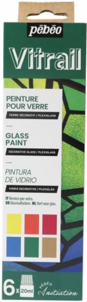 Barvy Vitrail jsou transparentní, na rozpouštědle založené barvy na sklo, kovy, plexisklo, polyester a další povrchy. Jsou to intenzivní, lesklé a velmi zářivé na vzduchu schnoucí barvy s výbornou odolností proti světlu.Sada obsahuje 6 různých odstínů Vitrail po 20 ml.