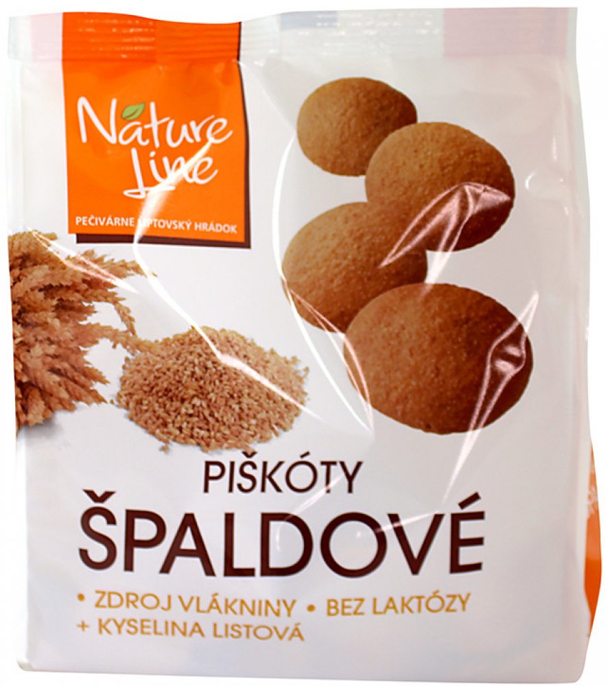 Špaldové piškoty jsou bezlaktózové piškoty, které jsou zdrojem vlákniny, kyseliny listové, vitamínů E, D a skupiny B.