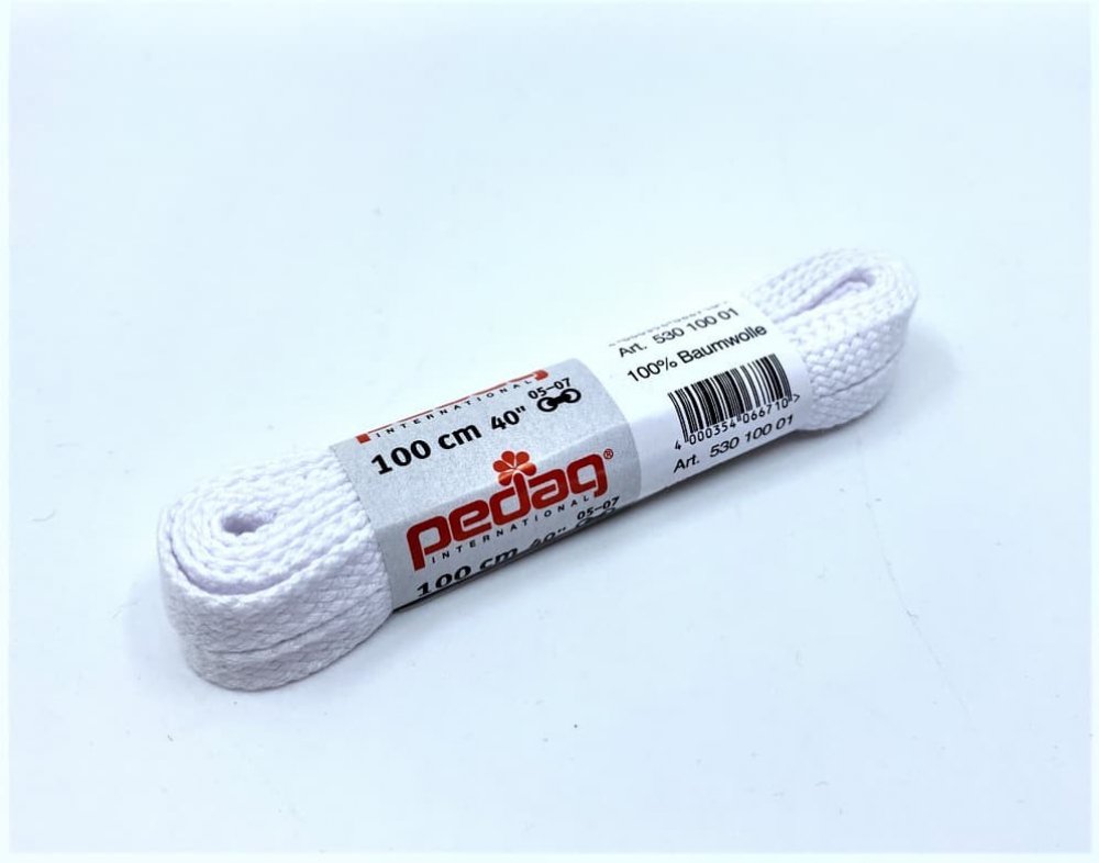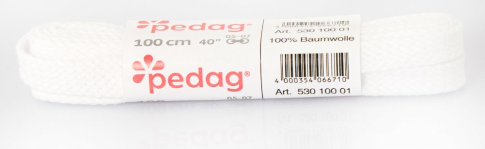 Ploché široké tkaničky Pedag 100 cm – kvalitní, pevné a ideální do tenisek či volnočasové obuvi. Pedag ploché široké tkaničky 100 cm zajistí pohodlné, stabilní a pevné zavázání vaší obuvi. Díky kvalitnímu materiálu jsou odolné vůči tření a skvěle padnou do tenisek, volnočasových i nízkých bot.Materiál: 100% bavlna