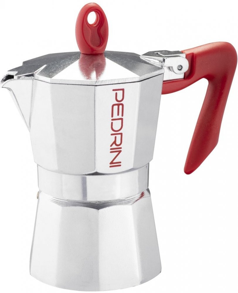 Pedrini Kaffettiera je nadčasová hliníková moka konvička vyráběná exkluzivně v Itálii. Její desetihranný tvar zajišťuje perfektní rozložení tepla při ohřevu, což přispívá k rovnoměrné extrakci kávy. Konvička je vyrobena z potravinářského hliníku EN601, který je nejen odolný, ale také umožňuje tvorbu jemné patiny. Ta se při pravidelném používání vytváří na vnitřním povrchu a postupem času obohacuje chuť každého šálku. Ergonomická žáruvzdorná rukojeť s tepelnou odolností až do 210 °C je navržena pro pohodlnou manipulaci a spolu s praktickým silikonovým těsněním zaručuje dokonalou těsnost při každém vaření. Bezpečnost zajišťuje 100% kontrolovaný bezpečnostní ventil, který eliminuje riziko přetlaku.