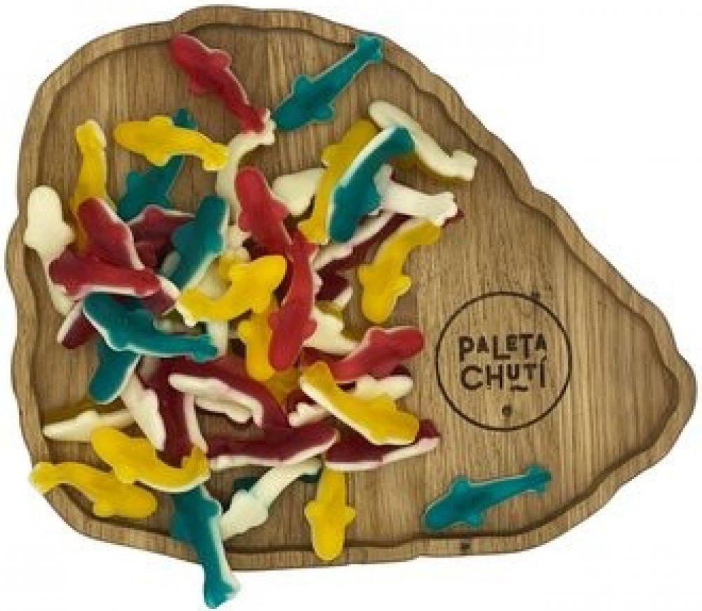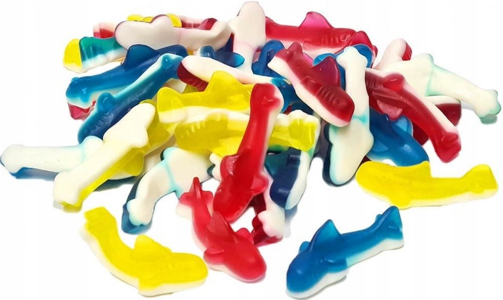 Žraloci ve veselých barvách jsou skvělou volbou pro milovníky želé s pěnou a příchutí maliny, jahody a citrónu.