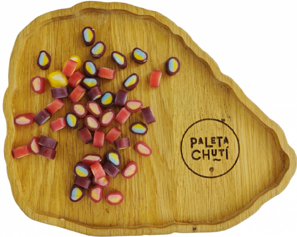 Složení: cukr, pšeničná mouka, glukózový sirup, hroznová šťáva z koncentrátu 15 %, rostlinné oleje (kokosový, bambucký), regulátory kyselosti (kyselina citronová, citronany sodné), zvlhčující látka (glycerol), koncentráty rostlinných šťáv (mrkev, černá mrkev), želatina, emulgátor (mono- a diglyceridy mastných kyselin), přírodní aromata, koncentrát ibišku, koncentrát spiruliny, leštící látka (šelak)