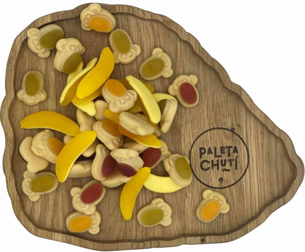 Příjemný mix želatinovo-pěnových bonbonů ve tvaru opiček a banánů obsahuje 5% ovocné šťávy z hroznů, ananasu, pomeranče, mandarinky, guavy, meruňky, manga, marakuji, jablka, papáji a limetky. Základem je samozřejmě oblíbená banánová příchuť. Bonbony jsou vyráběny bez konzervantů a palmového oleje.
