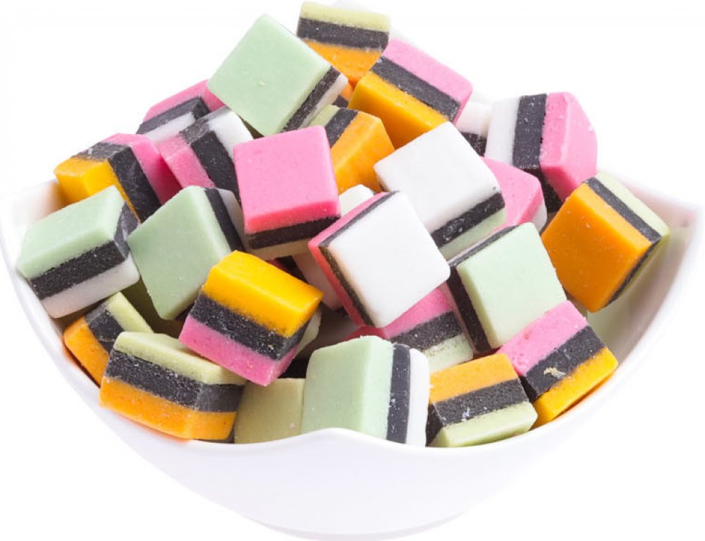 Popis: Lékořicová cukrovinka s cukrovou hmotou s ovocnými příchutěmi