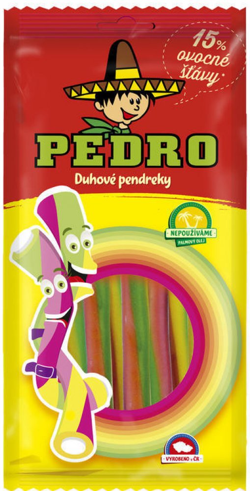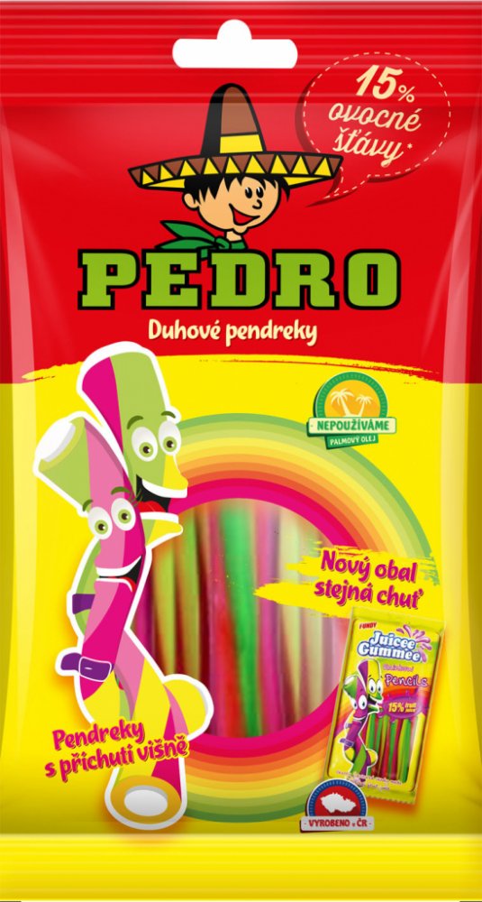 Složení: Cukr, pšeničná mouka, glukózový sirup, koncentrát hroznové šťávy, rostlinné oleje (bambucký olej, kokosový olej), voda, regulátory kyselosti (kyselina citrónová, citronany sodné), zvlhčující látka (glycerol), barviva (karmíny, kurkumin, brilantní modř FCF), aroma, koncentrát z ibišku a mrkve, želatina, emulgátor (mono a di-glyceridy mastných kyselin), leš...