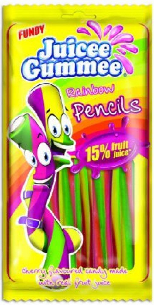 Složení: Cukr, pšeničná mouka, glukózový sirup, koncentrát hroznové šťávy, rostlinné oleje (bambucký olej, kokosový olej), voda, regulátory kyselosti (kyselina citrónová, citronany sodné), zvlhčující látka (glycerol), barviva (karmíny, kurkumin, brilantní modř FCF), aroma, koncentrát z ibišku a mrkve, želatina, emulgátor (mono a di-glyceridy mastných kyselin), lešticí látka (šelak).