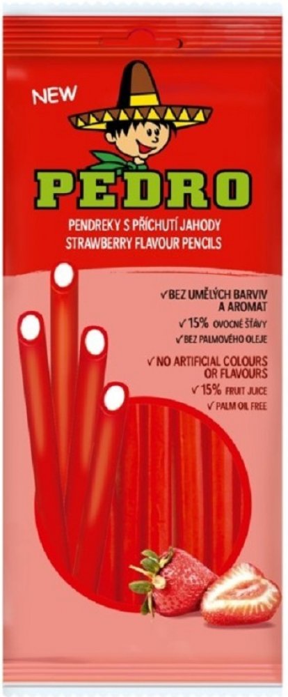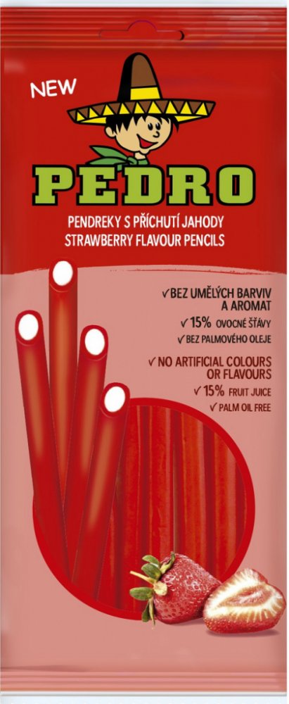 Krásně sladká jahodová příchuť a jemná náplň určitě potěší každého milovníka sladkých Pedro dobrůtek. Vyrábíme a prodáváme je již více než 5 let. Nyní jsme se rozhodli dát je rovněž do naši velké Pedro rodiny. Obsahují až 15% ovocné šťávy a jsou vyrobené bez palmového oleje a konzervantů.