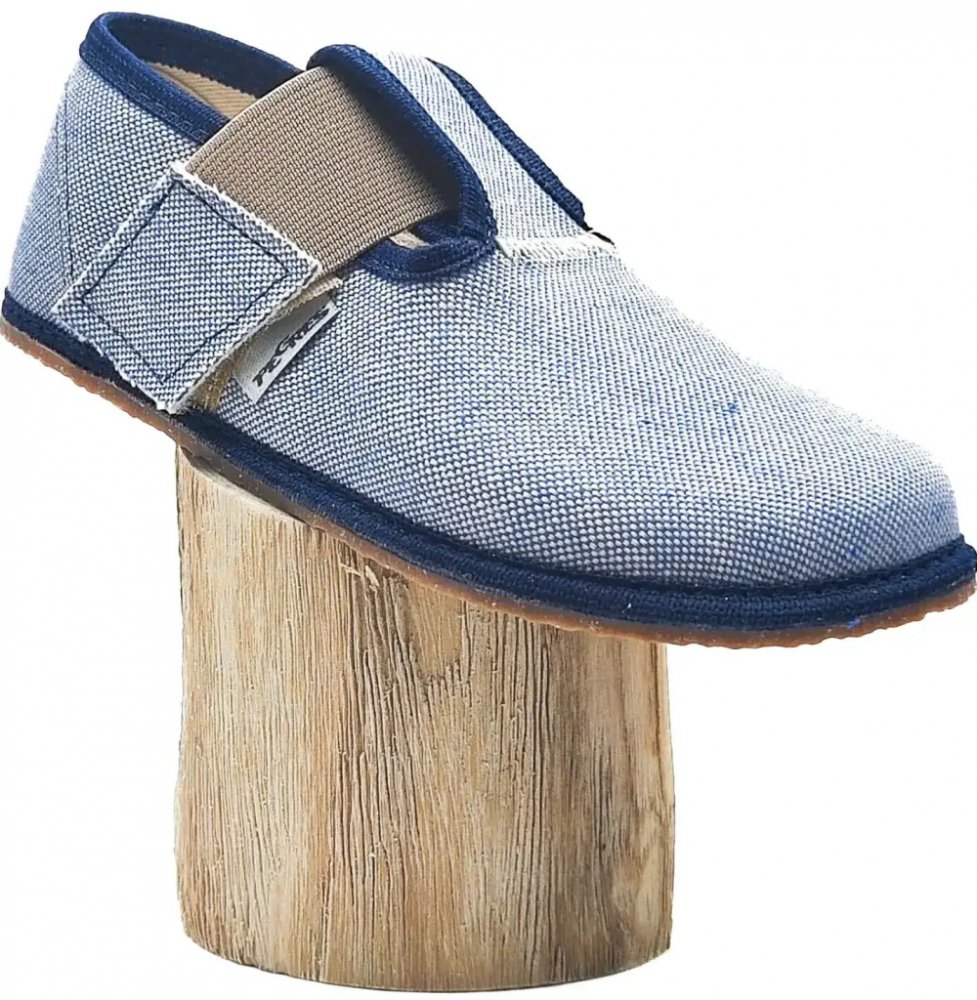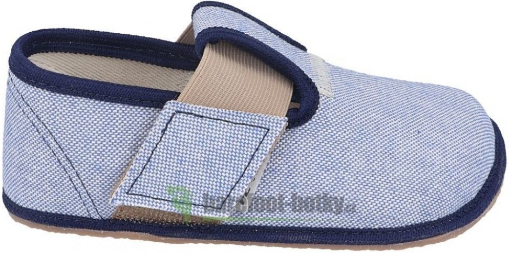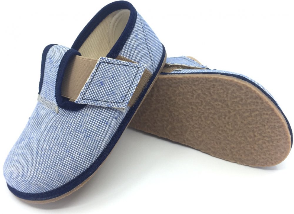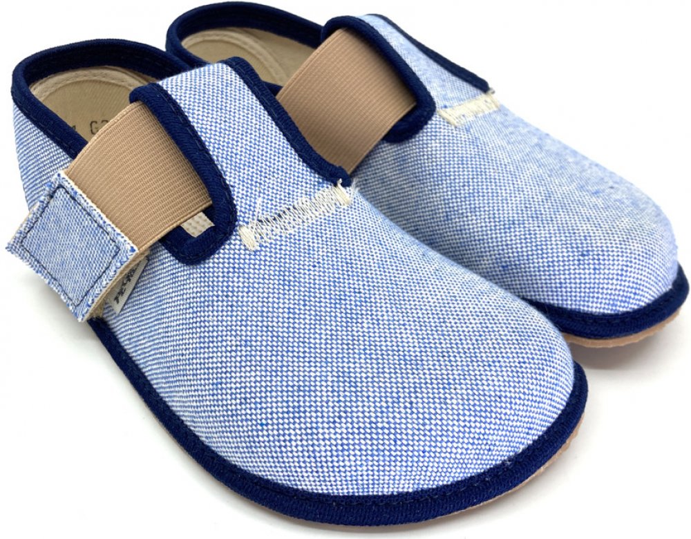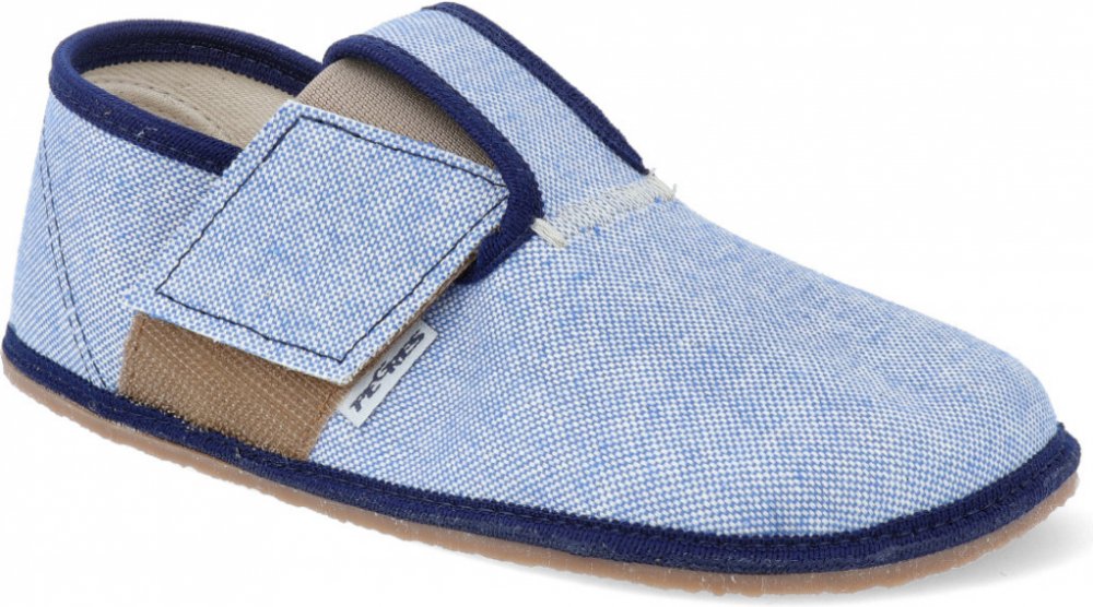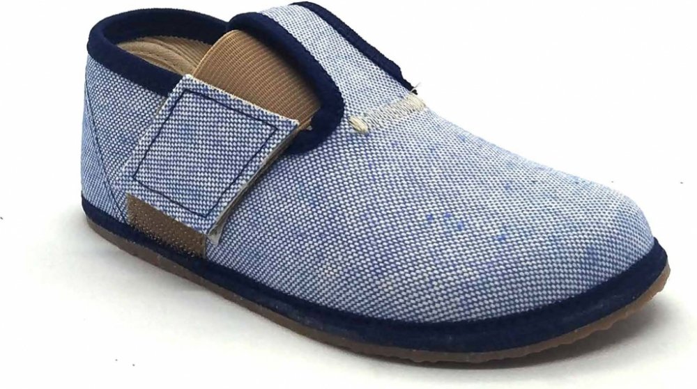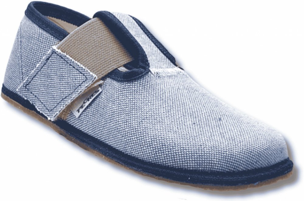 Bačkory Pegres BF01 v nové modré barvě - barefoot papučky šité na nových kopytech. Nový tvar špičky je 100% barefoot s dostatkem místa pro prsty - oproti řadě "Bosé Pegresky" jsou vhodné také na dominantní palce. Prsty mají dostatek místa nejen do šířky, ale díky novému tvaru také do výšky - papučky se směrem do špičky nesnižují. Výborná ohebnost, pěkný jednoduchý design, krásné zpracování, svršek...