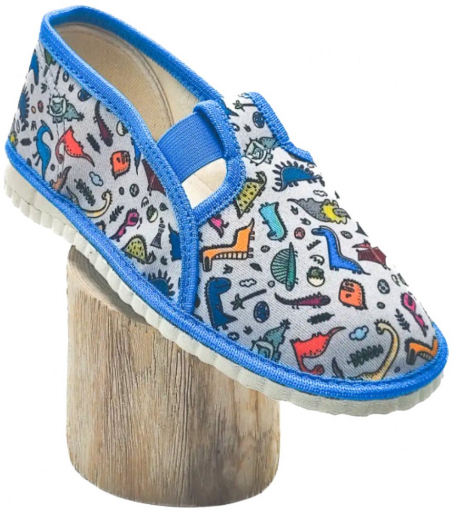 Pegres BF01 chlapecký mix jsou lehké a flexibilní dětské papuče určené pro vnitřní použití. Jedná se o kompromisní obuv s barefoot prvky, která nabízí dostatek prostoru pro prsty a podporuje přirozený pohyb nohou bez přehnaného zpevnění. Podrážka je tenká (cca 3–4 mm), gumová, částečně ohebná a protiskluzová. Špička papuče je anatomicky tvarovaná a vhodná i pro širší chodidla nebo dominantní palec. Obuv má mírně zpevněný opatek, který zajišťuje stabilitu, ale neomezuje v pohybu. Svršek i podšívka jsou z příjemného a prodyšného textilu. Vnitřní stélka je rovná, bez podpory klenby, a lze ji snadno vyjmout pro lepší hygienu nebo kontrolu velikosti. Zapínání pomocí suchého zipu umožňuje snadné obouvání a přizpůsobení různým tvarům nohy – včetně vyššího nártu nebo užšího kotníku. Tyto přezůvky jsou ideální volbou pro školku, školu i domácí prostředí. Nabízejí pohodlí, funkčnost a volnost pohybu, kterou dětské nohy potřebují pro zdravý vývoj.