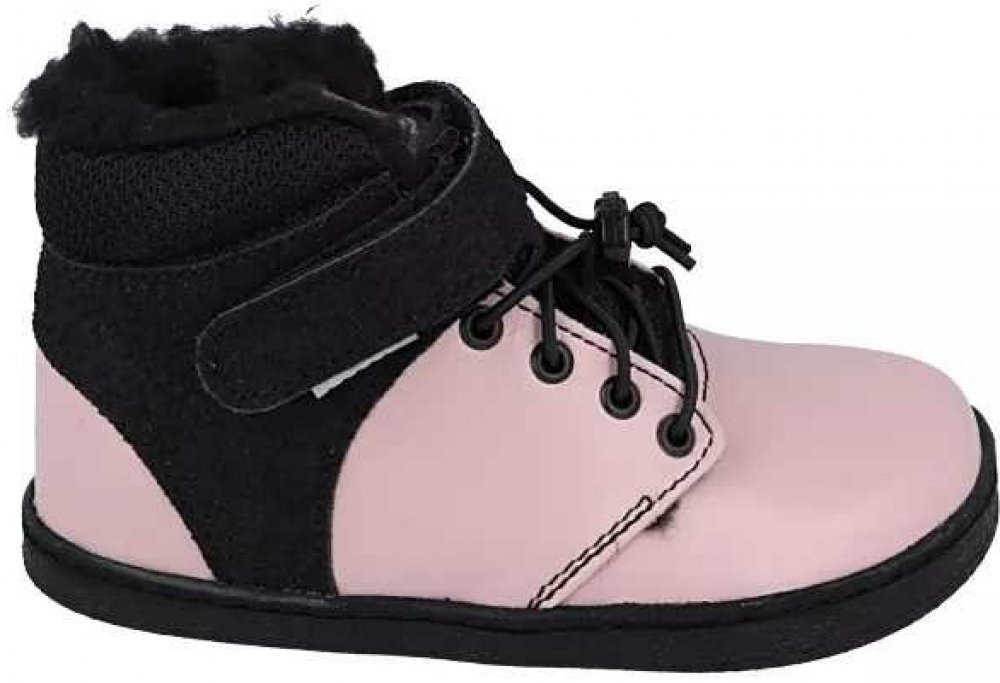 Pegres zimní barefoot kožené boty BF40 0.1 růžové