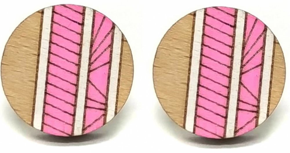 Dřevěné náušnice čáry růžové mají výšku 13 mm a šířku 13 mm. Puzeta m...