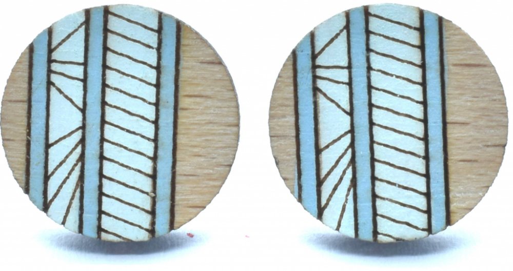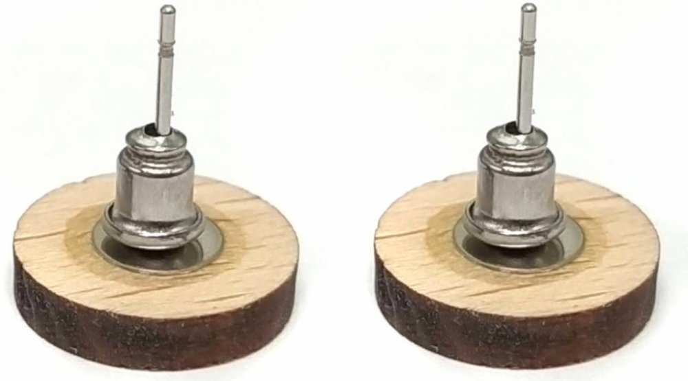 Všechny kovové komponenty (puzety) dřevěných náušnic jsou z chirurgické oceli. Materiál je bukov é dřevo silné 3 mm. Po vyříznutí na laseru dřevo pečlivě brousíme do hladka. Následně barvíme akrylovou barvou a teprve potom gravírujeme motiv. Každá naše dekorace je ručně broušená, proto se dřevo a barva mohou lišit od nafocených obrázků. Dřevo může obsahovat suky, zbarvené oblasti a další nesrovnalosti, které se vyskytují ve všech dřevinách. Každý kus je tedy jedinečným originálem.