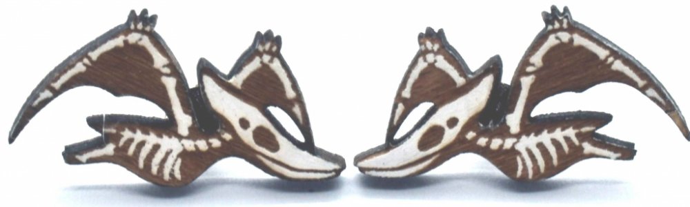 Chcete mít originální náušnice? Milujete dřevo? Pořiďte si naše dřevěné náušnice pterodactylus kostra v originální grafice.