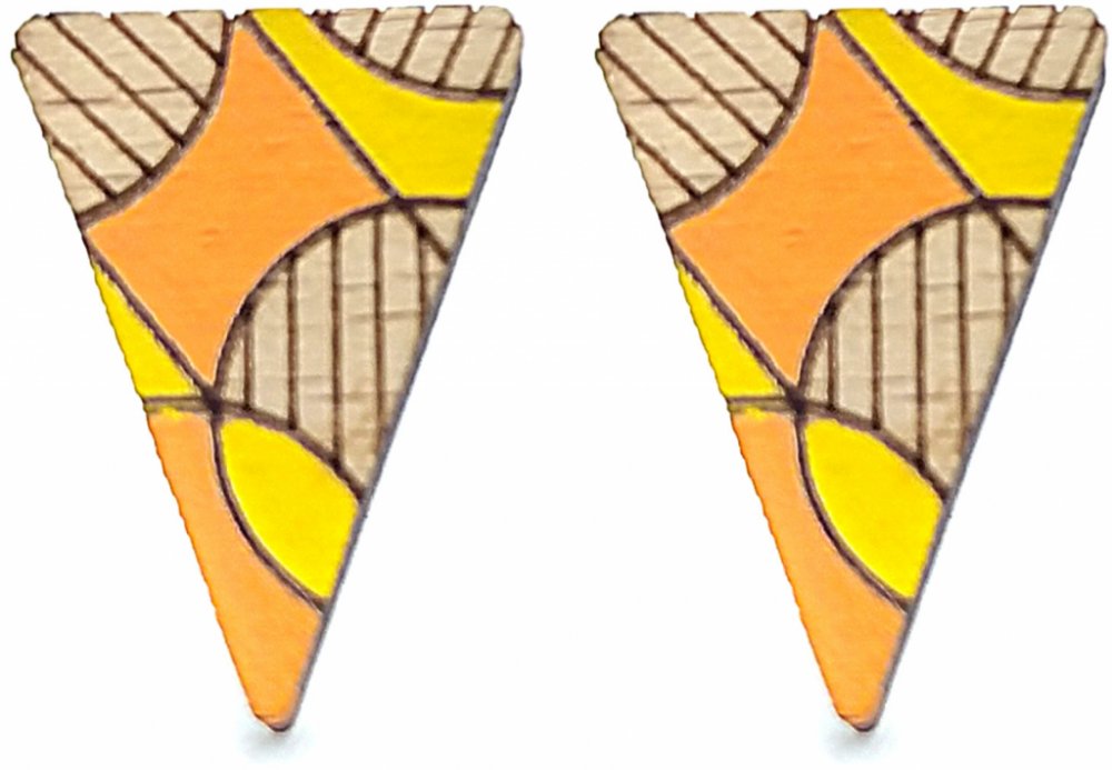 Dřevěné náušnice trojúhelníky oranžové jsou částečně upraveny akrylovou barvou.