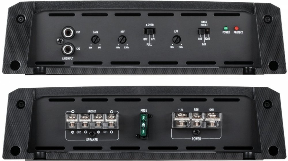 Zesilovač může být použit jak k zesílení zvuku připojením k původním reproduktorům v autě, tak ke zvýšení a zlepšení dynamiky zvuku připojením dodatečného subwooferu.