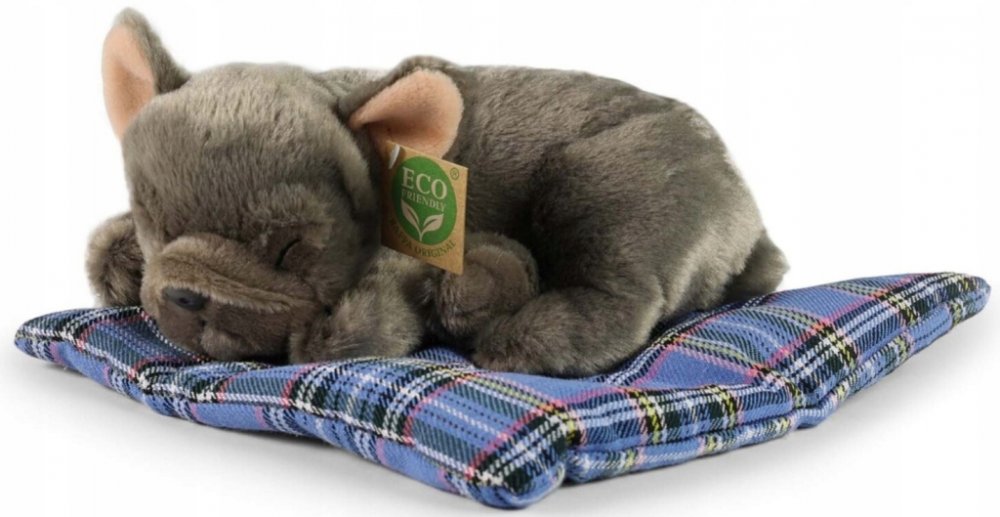 Plyšová Hračka od české firmy Rappa představuje psa Francouzský Buldoček, který krásně leží na polštáři. Plyšák byl velmi detailně propracován, měří 23 cm a je celý pokryt měkkým plyšem. Pejsek byl zobrazen v ležící poloze.