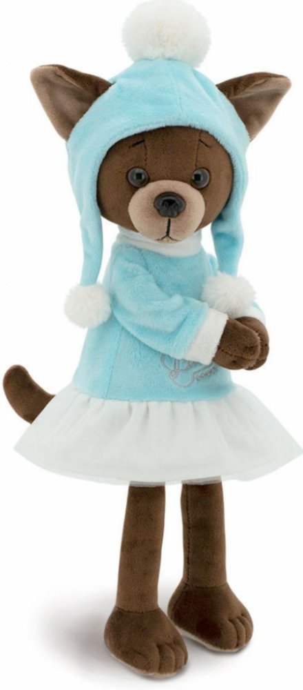 Plyšový pejsek Orange Toys Kiki v modrém oblečku je měkká a jemná hračka z kolekce Lucky Doggy určená k mazlení a hraní. Kiki je sympatická hnědá čivava s pohyblivou hlavičkou. Pejsek je dlouhý 38 cm a vsedě měří 25 cm. Na konci předních tlapek má magnetky, díky kterým umí držet tlapičky u sebe, a protože je na zadečku kuličková výplň, hezky sedí. Kiki je oblečena do světle modrých teplých šatů s bílým lemováním a krátkou sukýnkou se zapínáním na suchý zip na zádech. Na hlavě má čepičku s bambulkami a dírami pro uši. Pejsek je balen v hezky zdobené dárkové krabici, jejíž kartonové díly lze po vyjmutí použít k sestavení věšáku na oblečky se čtyřmi ramínky. Plyšák je vyplněn polyesterovými vlákny a polyethylenovými kuličkami. Péče o něj je jednoduchá, stačí ruční praní při 30 °C. Plyšák je doporučen pro děti od 3 let a splňuje bezpečnostní a zdravotní normy CE. Klíčové vlastnosti plyšového pejska čivavy Kiki Orange ToysPlyšový pejsek s realistickým tvarem a pohyblivou hlavičkou pro...