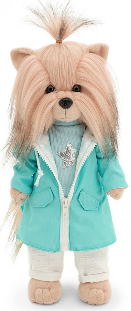 Tato yorkšírka je oblečena v módní mint bundičce a svetříku s hvězdičkou.