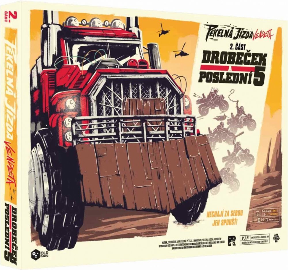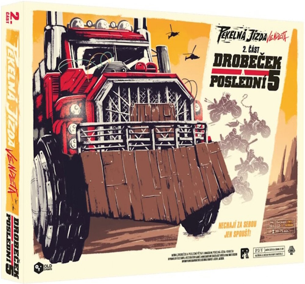 Drobeček a Poslední 5 je rozšíření pro závodní hru Pekelná jízda: Vendeta, které přidává hned dvě další posádky: Drobečka - bojového tahače, jehož tři části fungují autonomně, a Poslední Pětku - gang pěti agilních motorek. Můžete v jedné hře využít obě, nebo je jakkoli zkombinovat s posádkami ze základní hry. Zároveň takto můžete hrát Pekelnou jízdu ve více než čtyřech hráčích a to bude teprve jíz...