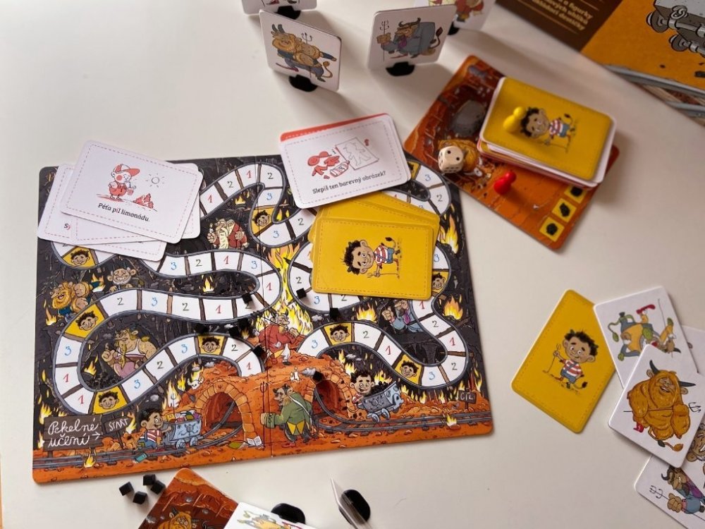 Hra obsahuje: hrací desku, kostky a figurky, 188 karet, 40 žhavých uhlíků, 36 čertů, 4 odkládací destičky. Pravidla hry jsou součástí balení.