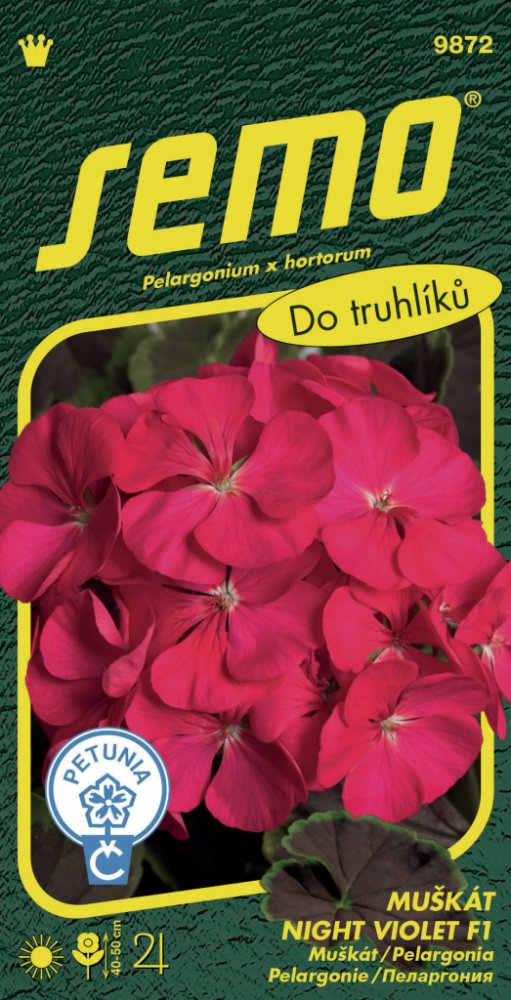 Odrůda - Night Violet F1 ( kod 9872 ) - Série NIGHT je dekorativní nejen květy, ale jejich krásu podtrhují i tmavě hnědé listy se zeleným okrajem. Výjimečná kombinace barev listů a květů těchto muškátů je velmi efektní.