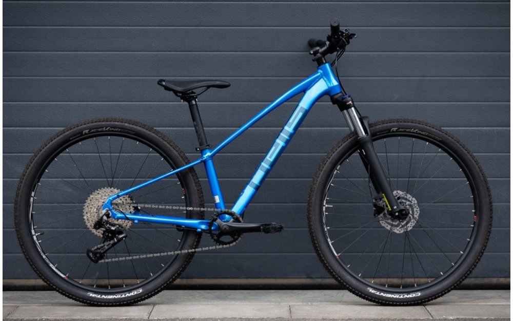Model je osazen kvalitní výbavou v podobě odpružené vidlice SR Suntour XCM 100 mm, pohonu TBA 1x9, výkonných brzd Shimano BL-MT200 a plášťů Continental Cross King.