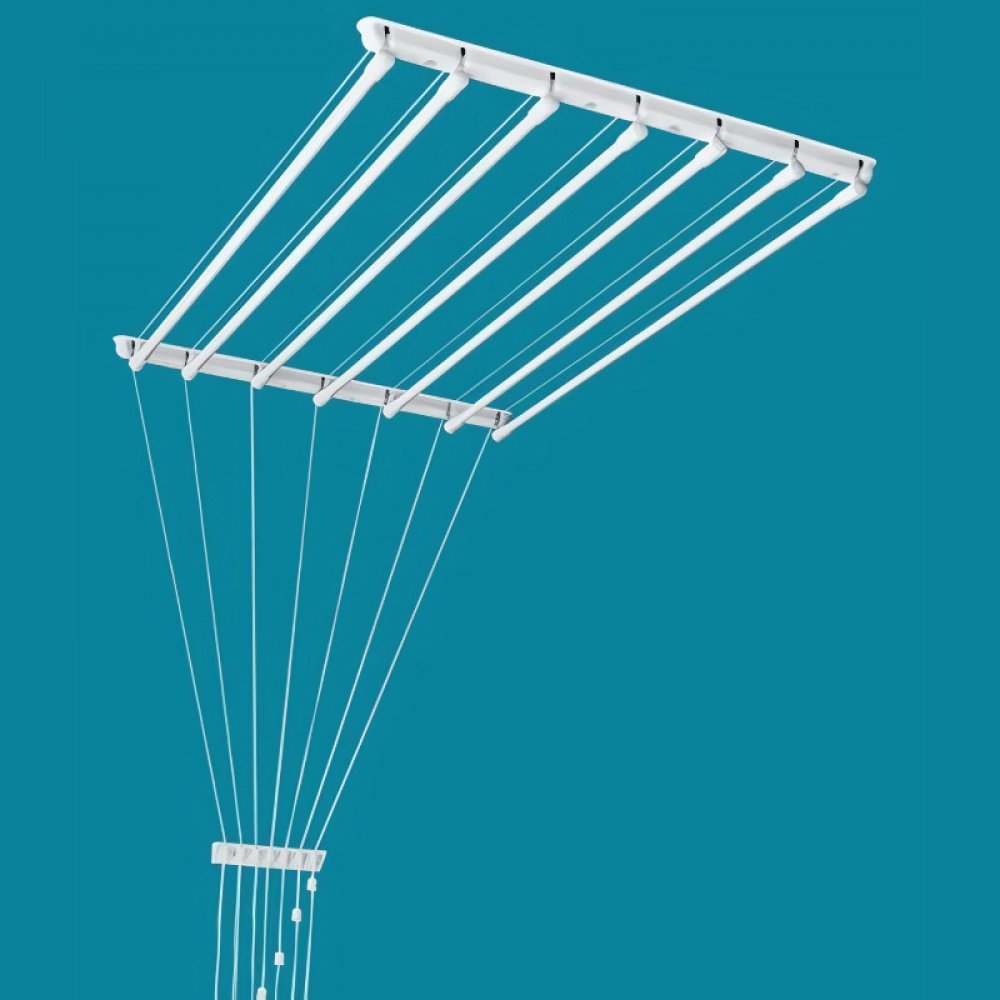 Jednoduchá elegance stropního sušáku dokonale zapadne do interiéru nebo exteriéru vašeho domova. Zároveň můžete plně využít prostor pod ním a prádlo vám již nebude překážet.