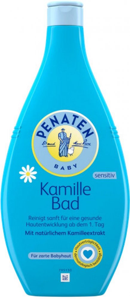 Koupelový přípravek Penaten s heřmánkem jemně čistí dětskou pokožku, obsahuje výtažek z heřmánku a lehkou vůni heřmánku. Díky složení "No more tears" je pečující lázeň pro oči stejně jemná jako čistá voda. Snášenlivost přísady do koupele s pokožkou byla potvrzena dermatologicky.