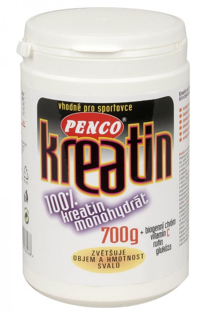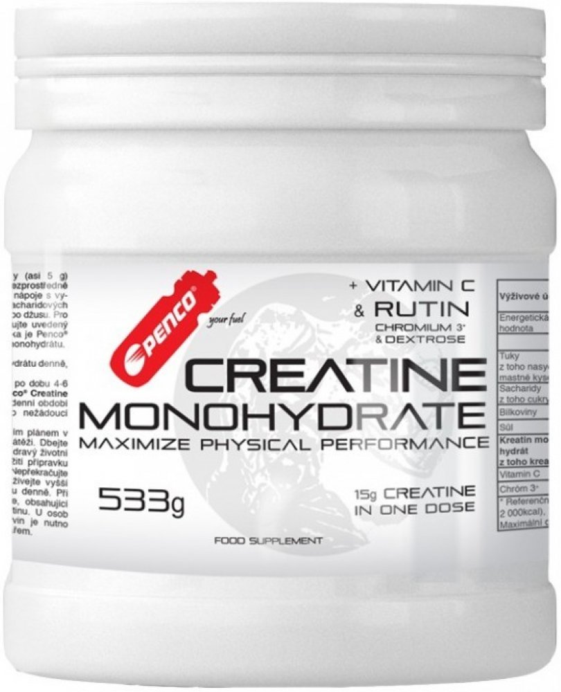 Pro maximální podporu účinku kreatinu obsahuje PENCO KREATIN MONOHYDRÁT specifický transportní systém - čistou glukózu a trojmocný chróm, látky -které stimulují akumulaci kreatinu ve svalu. Navíc další dvě složky, vitamín C a flavonoid rutin výrazně posilují odolnost organizmu.