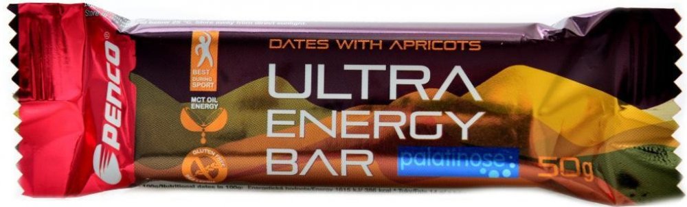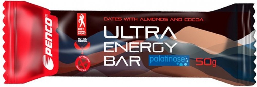 88 % tyčinky PENCO® ULTRA ENERGY BAR tvoří ovoce, které je vhodným zdrojem sacharidů a dodává organismu energii pro fyzický výkon. Hlavní ovocnou složkou jsou datle, které obsahují významné množství některých vitamínů a minerálních látek, zejména draslíku. Tyčinky Ultra Energy Bar neobsahují řepný cukr ani kukuřičný sirup s vysokým obsahem fruktosy.
