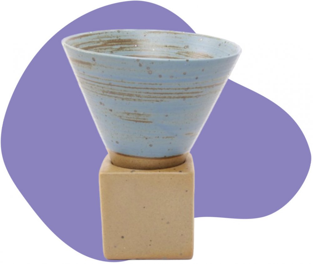 Šálek má objem 150 ml. Set se skládá z trychtýřovitého kalíšku a podstavce. Jedná se o keramiku. Nedoporučujeme dávat do myčky.