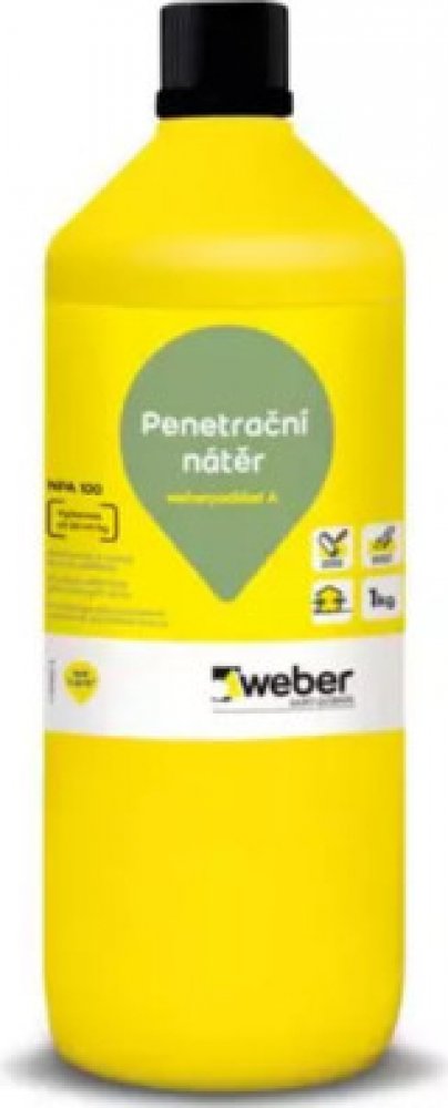 Podkladní nátěr slouží jako penetrace savých podkladů před jejich aplikací. Podkladní nátěr Weberpodklad A 1 kg na bázi akrylátové diperze. Je koncentrovaný a určený k ředění vodou. Po vyschnutí je transparentní.
