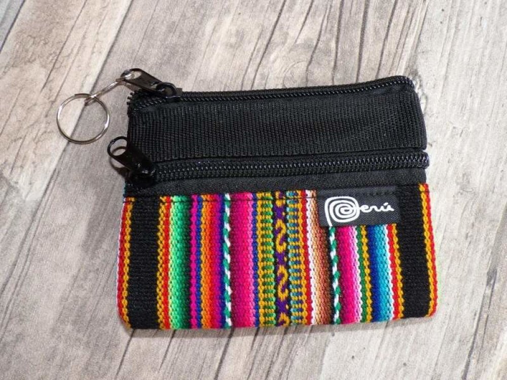 Malá peněženka na drobné zdobená tradiční peruánskou látkou, možno přidělat na klíče.