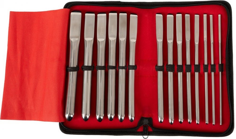 Luxusní sada pro všechny milovníky soundingu, tedy stimulace močové trubice zevnitř. Obsahuje 14 dilatátorů od značky Penisplug z vysoce kvalitní nerezové oceli v překrásném úložném pouzdře. Všechny dilatátory jsou hladké, leštěné a přímo stvořené k potěšení. Na každém z nich je pro lepší přehled vyrytý průměr a jistě oceníte také zaoblené špičky pro snadné zavádění a ploché rukojeti pro snadnou m...